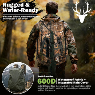 All-Weather 45L Hunting Backpack – Waterproof + Rain Cover + Padded Scabbard | Must-Have Gear for Deer Hunters | Great Gift To Chose