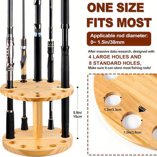 Wooden Fishing Rod Holders for Garage, 12 Holes Rod Rack, Vertical Fishing Pole Holders Floor Stand, Storage 12 Fishing Rods & Reel Combo, Great Father's Day Fishing Gifts for Men